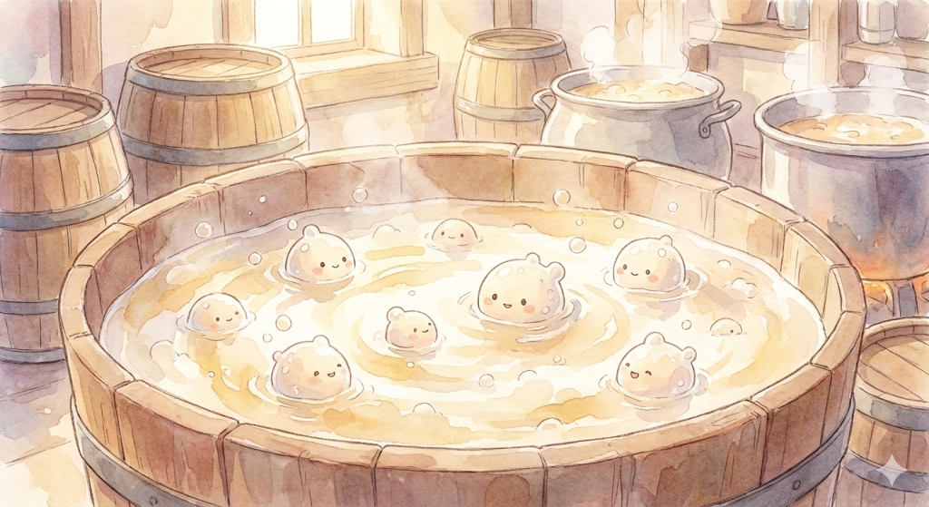 - 酵母が糖をアルコールに変える「発酵」