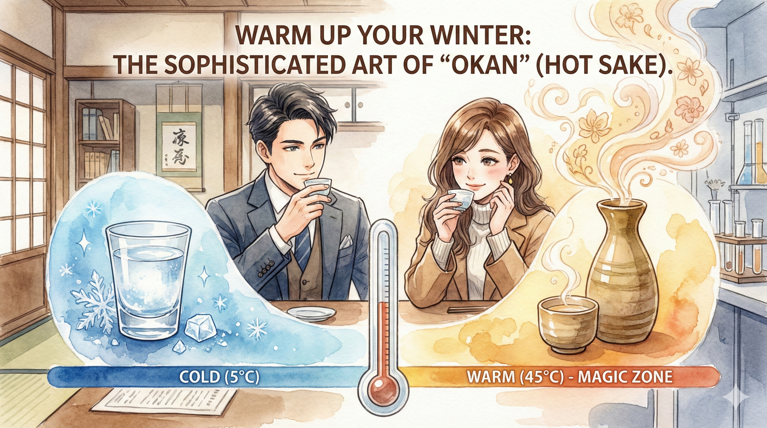 But if you only drink sake cold, you are missing out on half the fun. In the West, heating fine alcohol is often seen as blasphemy. But in Japan, “Okan” (お燗 / Warmed Sake) is not about fixing cheap booze. It is a sophisticated art form, a culinary experiment that transforms flavor through physics.